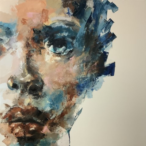 Collection privée. Italie. D-TER... Les visages colorés et peints au couteau permettent de triturer la couleur et de travailler sur la matière plus que sur la ligne. Cela donne des compositions originales que je présente avec un cadrage particulier comme pour cette toile en partance pour la Sicile.