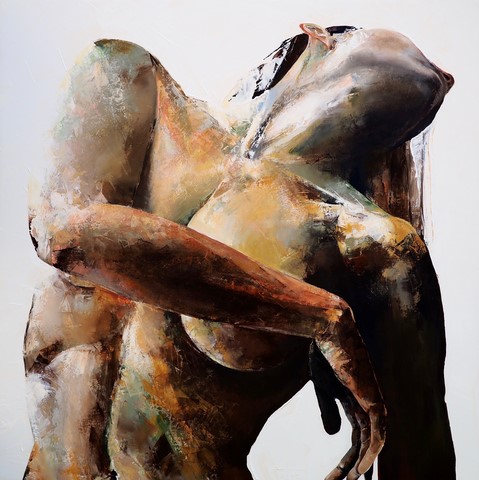 Collection privée. France. Vertige... Au cours d'une carrière professionnelle dans l'encadrement du sport et en particulier de l'accès des sportifs au haut niveau, j'ai été confronté à la transformation des corps, à leur modelage, à leur façonnage. Dans cette toile, j'exprime les mouvements extrêmes auxquels ils sont confrontés, notamment en danse contemporaine.
