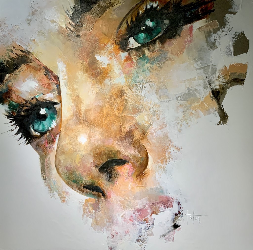Info d'août 2022 - Voici une dernière oeuvre emblématique de la période "covid" que nous traversons. Il s'agit de faire face (to face) avec son corps, comme un rempart naturel mais pas dérisoire. Et c'est essentiel. To Face . Huile sur Toile. 100 x 100cm.