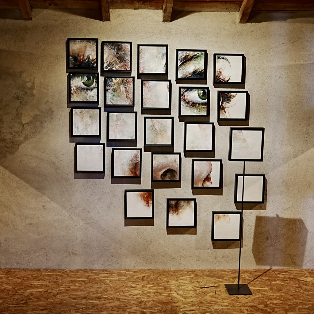 Info de Juin 2024 - "Alanguie", un nu fractionné en dix panneaux prend la vedette à la galerie de l'Isle-sur-la-Sorgue. La fragmentation permet de jouer sur la disposition, comme ici avec l'angle d'une cloison.