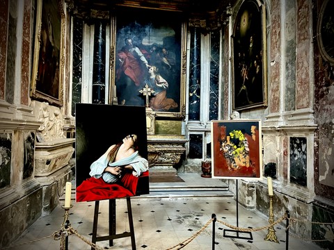 Info de Juillet 2024 - L'interprétation que j'ai faite en 2022 du célèbre tableau du Caravage, "Marie-Madeleine en extase" (collection privée) sera exposée pendant deux mois à la Collégiale "Notre-Dame-des-Anges" à l'Isle-sur-la Sorgue (84). C'est un écrin idéal pour cette toile exceptionnelle. Ce sera l'occasion de s'attarder aussi sur les magnifiques oeuvres baroques de cet édifice incontournable. Photo Valérie GERMAIN - Tous droits réservés.
