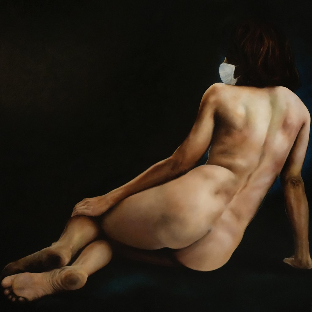 Collection privée, France. De 2020 à 2022 en France, la pandémie de corona-virus a mis en évidence la fragilité des liens humains. La communauté a été mise à mal. L'idée même du "vivre-ensemble" a été désacralisée. Ce fut une période de doutes et de réflexions pour chacun d'entre-nous, de positionnement aussi, car nous avons été les témoins, selon le bord d'où nous observions, d'idioties, de stupidités, d'incompétences et d'absurdités. Cette toile en est une allégorie.
