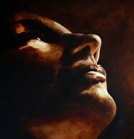 Collection privée, France. Qu'il est doux d'être sûr de soi. Quand il en va comme d'une évidence, c'est le repos de l'âme qui s'exprime. Ceci est un portrait de ma compagne traité en clair obscur. En toute simplicité. Brun van dick et Brun B de chez "Leroux", fabriquant français de couleurs haut de gamme.